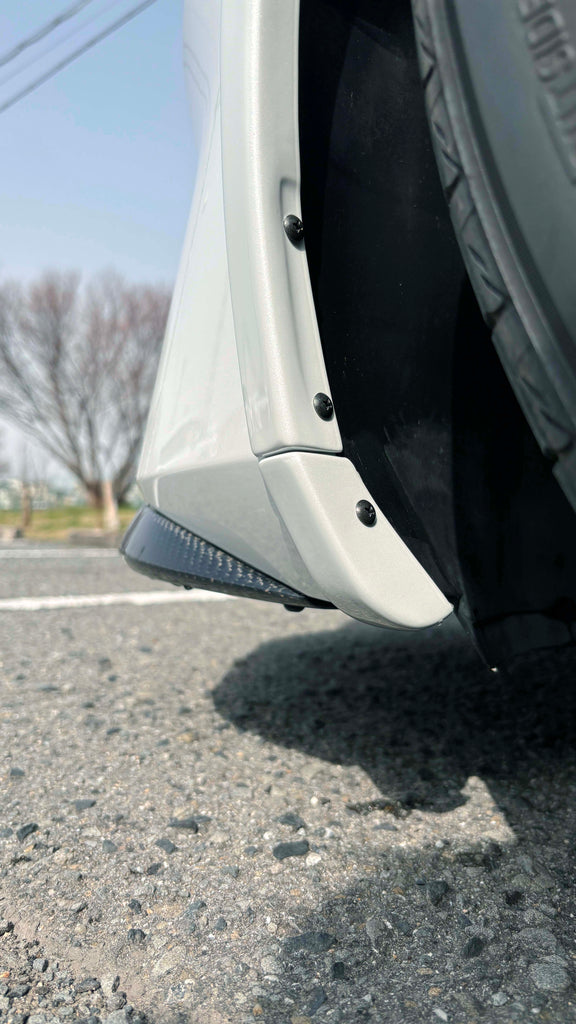 Nissan Z RZ34 front fender trim extensions are designed to extend the SpeedForme front fender trims all the way down to bottom of the bumper line. Available in FRP and twill weave carbon fiber. FRP pieces can be color matched along with the fender trim kits. Please choose the “color matched” option from the drop down menu and let us know your color code during final check out.